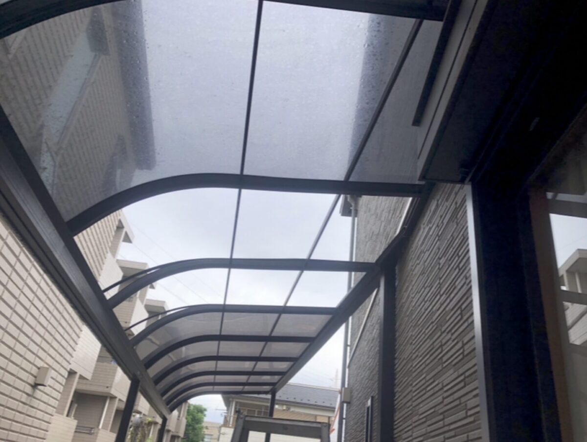 アパート自転車置き場のポリカ板が飛ばされ、施工をしました。