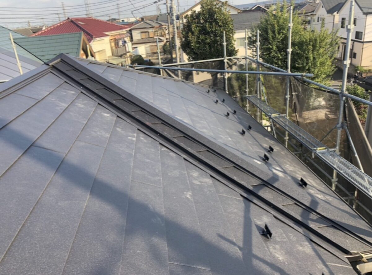 今回は、差し棟(さしむね)を含む屋根に対して、屋根カバー工法を行いました。
