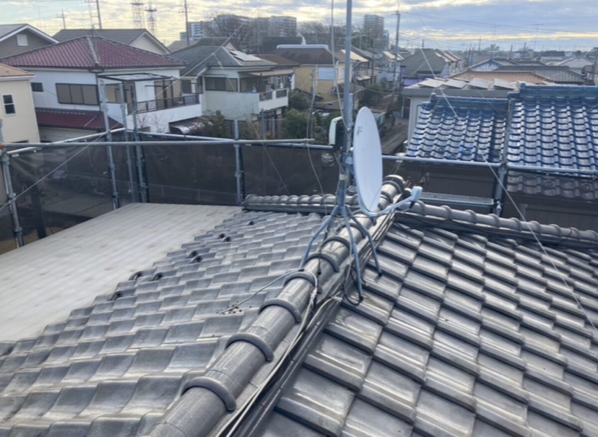 瓦屋根を撤去し、軽量な金属屋根へ葺き替える工事を行いました。