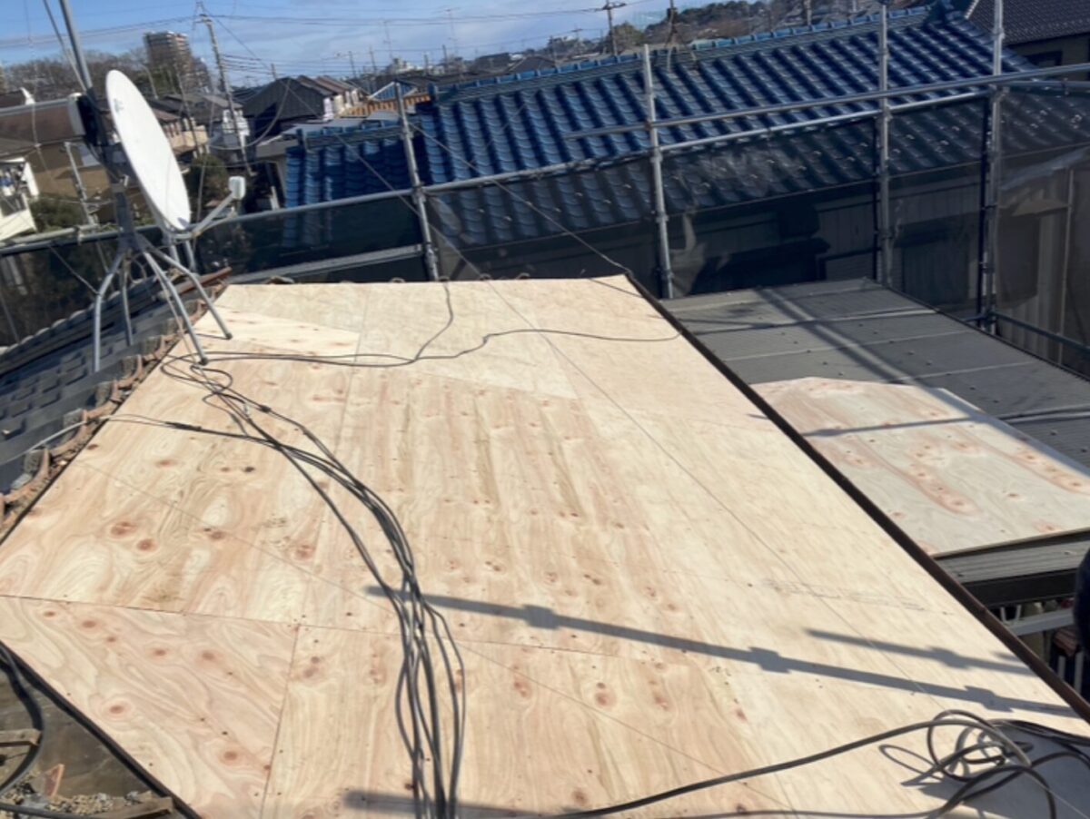 下地を整えたうえで野地板を施工しました。
