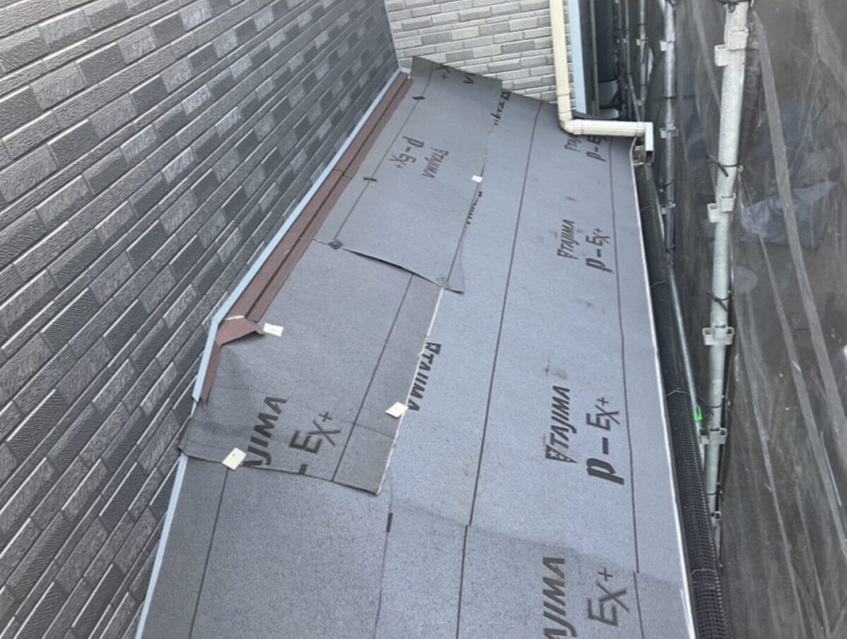 既存屋根の上からルーフィングを施工し、防水性を高めています。