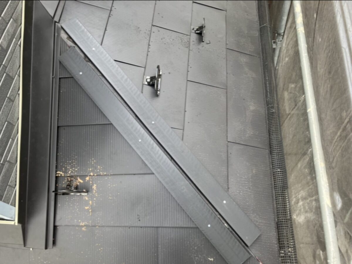 雨押え上部はコーキング処理を行い、雨水が侵入しないよう仕上げました。