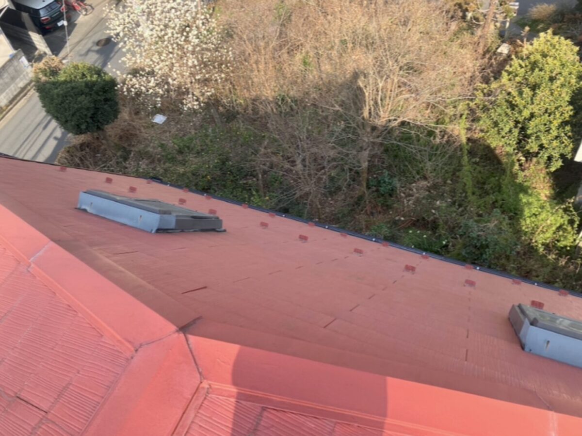 急勾配で天窓が2箇所ある屋根の施工事例です。