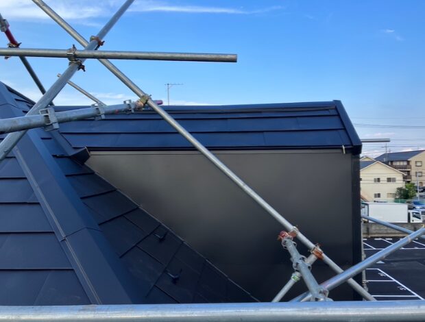 棟板金を外すことで下地が平らになり、防水シートをしっかり貼れる状態になります