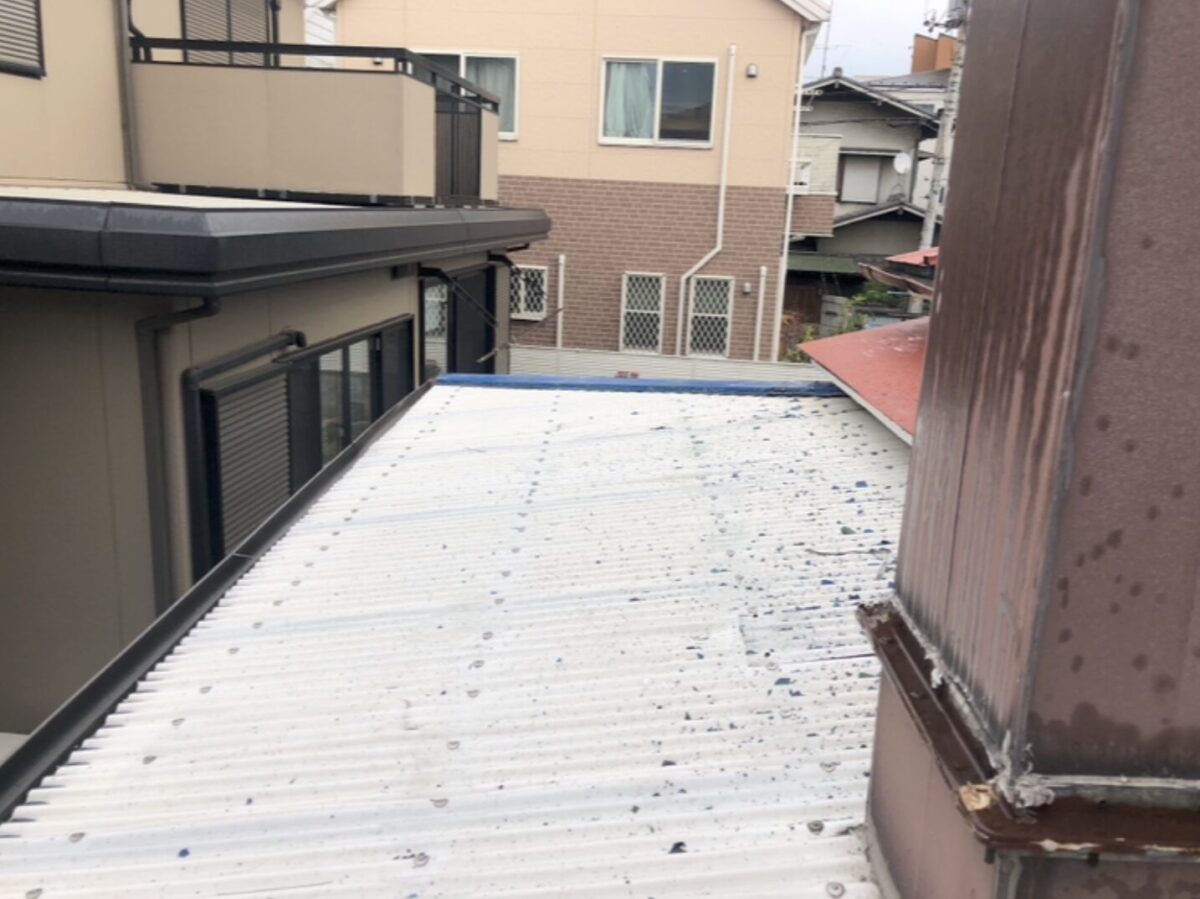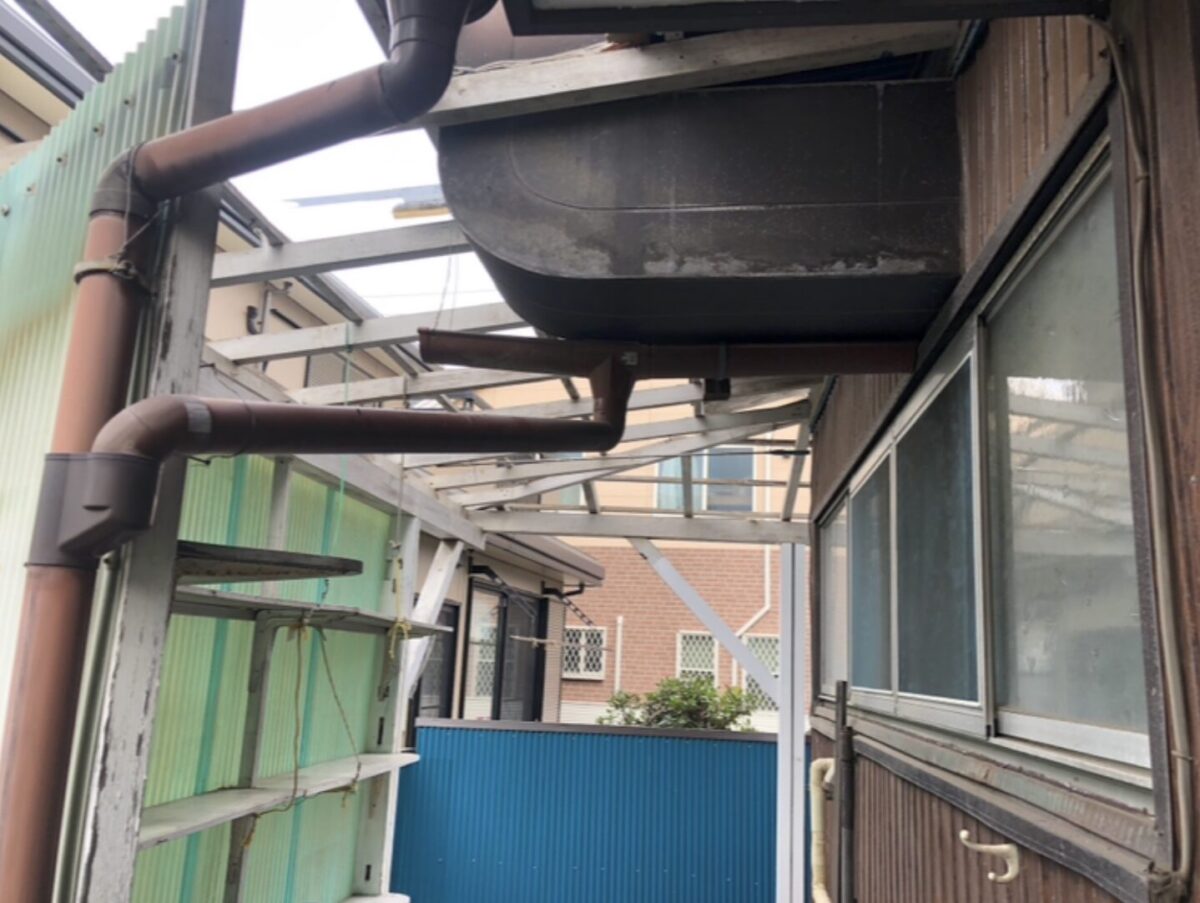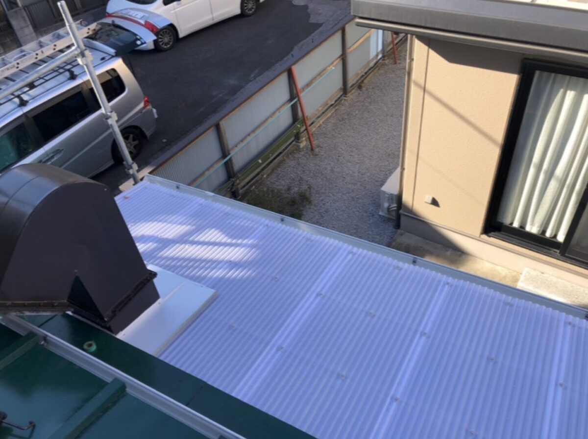 既存の劣化した波板を撤去し、新しいポリカーボネート製の波板を使用しています。