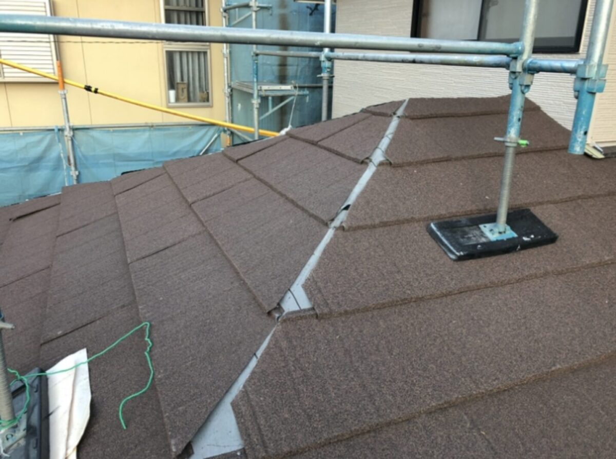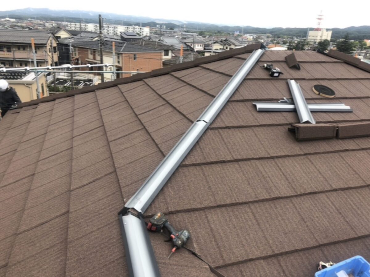 今回使用した屋根材は、ジンカリウム鋼板に石粒を施した屋根材で、