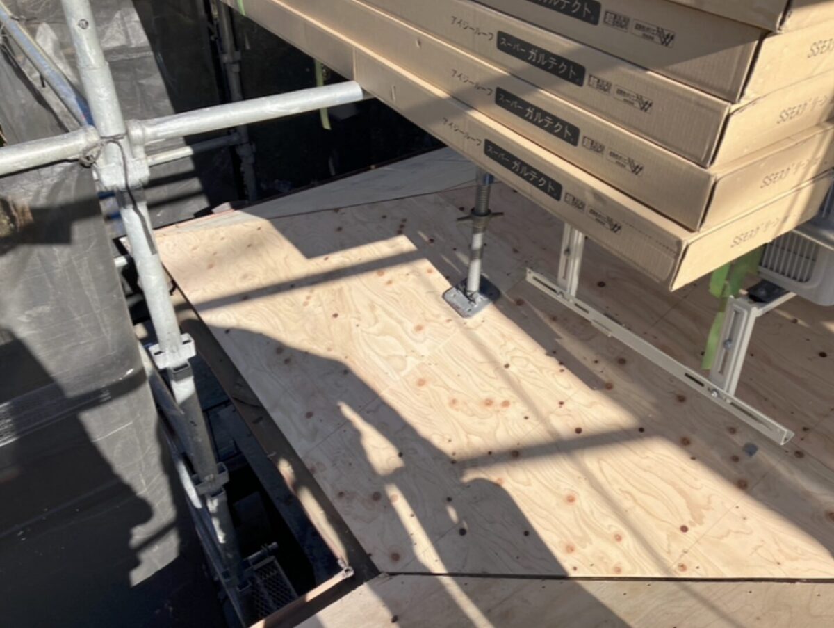 下屋根部分の施工となります。
