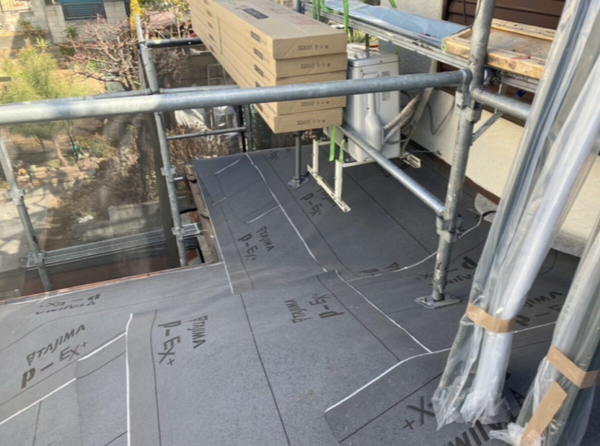 屋根全体にルーフィングを張り、防水性を確保しました。